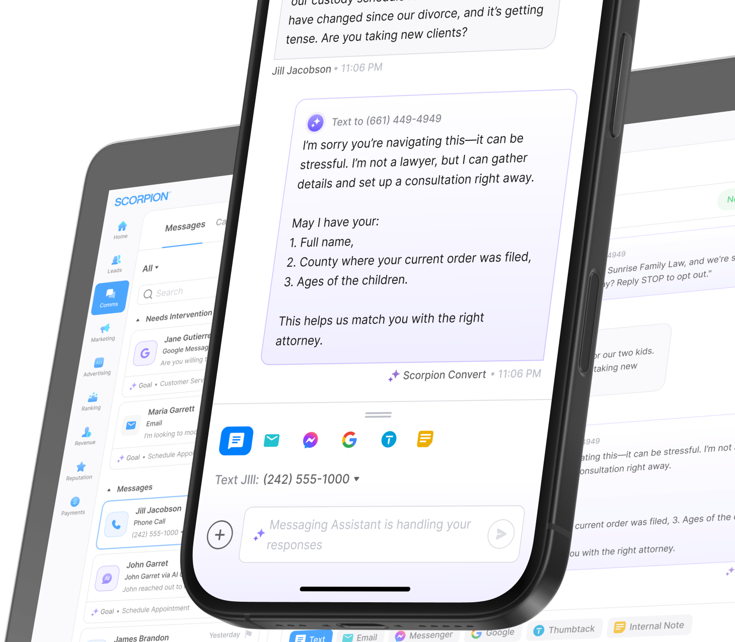 With Scorpion, you get a clear path to real revenue, better clients, and smarter decisions. Backed by AI and two decades of experience, we take the guesswork out of marketing so you can focus on what matters most: serving your community.