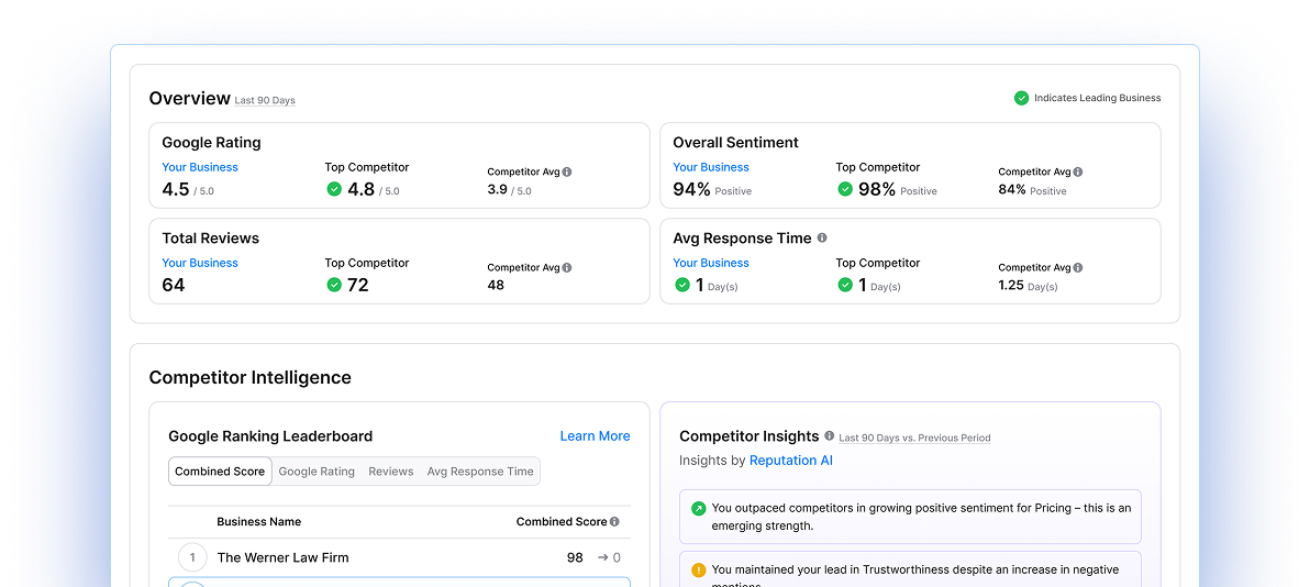 With Competitor Comparison and smarter AI Assistant responses, Reputation Suite is not just showing you where you stand. It is giving you the tools to rise above the competition and win more business.