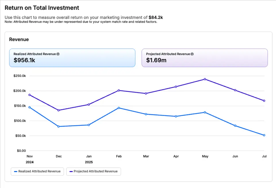 Gain clarity on both total revenue and marketing-attributed revenue per customer, helping validate strategy and guide spend.