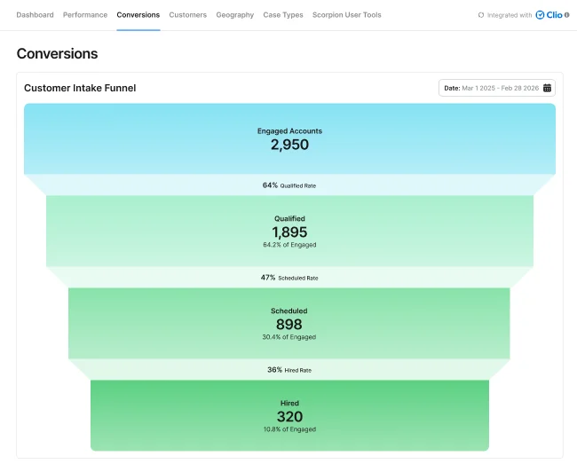 The advantage will go to companies that convert more of the leads they already have. That requires visibility across the entire customer journey, from marketing click to signed client, and the first step toward fixing intake is being able to see it clearly. If you’re not sure where leads are dropping out of your process, it may be time to take a closer look. Scorpion helps businesses connect marketing data with real intake outcomes so they can convert more of the demand they already have.