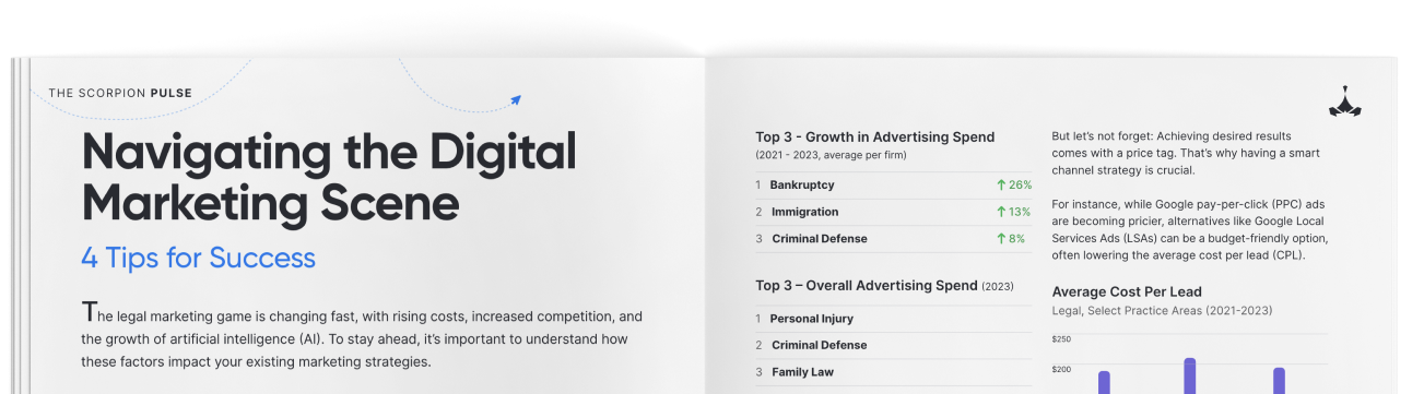 Help your law firm thrive while understanding how to navigate the digital landscape effectively. From rising advertising costs to changing consumer trends within the legal industry, gain the knowledge you need to exceed your goals and run your best law firm.