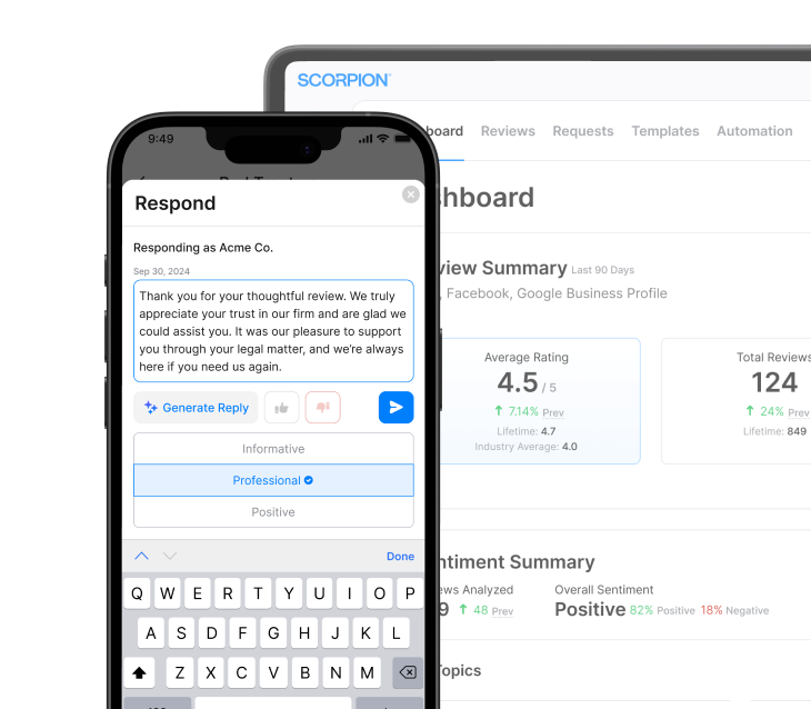 In family law, trust is often the deciding factor. Scorpion’s Reputation AI helps you earn more 5-star reviews and makes sure they get seen by future clients.