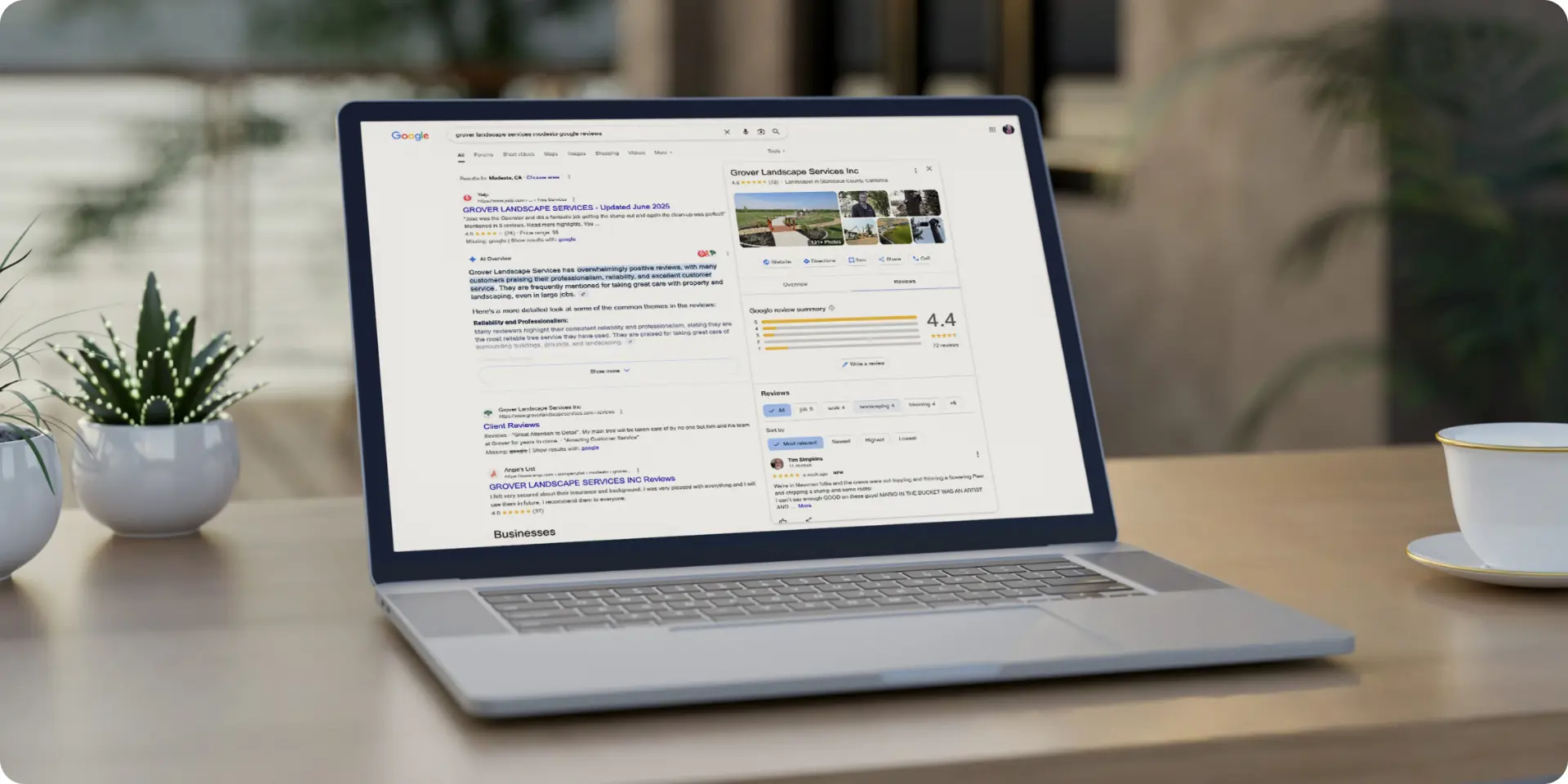 “Ads and SEO get you found but reviews close the deal,” says Julie Kennedy, Product Owner of Reviews & Reputation at Scorpion. Consistent, high-quality reviews and updated listings strengthen trust signals. That trust is critical when someone is hiring a landscaper they’ve never met.