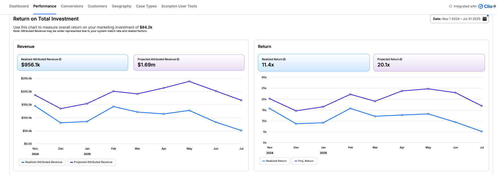 Scorpion’s Revenue Intelligence now includes Projected Attributed Revenue, giving legal professionals a forward-looking view of their true return.