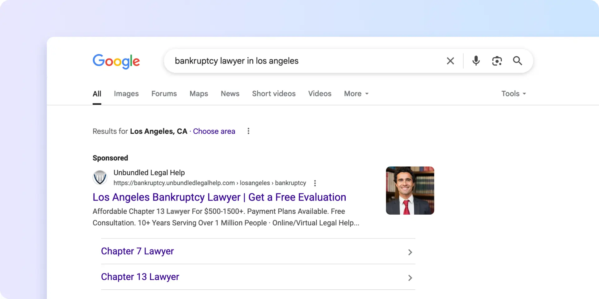 - Optimizing for targeted keywords such as “Bankruptcy Lawyer in [City]” to reach local clients.