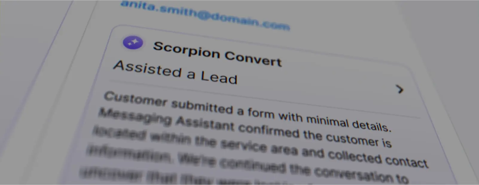 Your leads and future revenue want immediate responses from someone who has the answers. They won't wait. Scorpion Convert responds instantly with smart, helpful answers that capture attention, qualify prospects, and book more business, automatically.