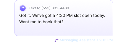 The Voice Assistant answers missed or after-hours calls with a smart, natural sounding AI that qualifies leads, collects service information, and schedules appointments in real time when connected with your scheduler.