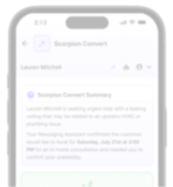 Your business is getting leads, but too many slip through the cracks. Calls go unanswered, messages go unreturned, teams are stretched thin or slow to follow up. That delay is costing you revenue. Scorpion Convert captures leads the moment they come in and turns them into booked business.