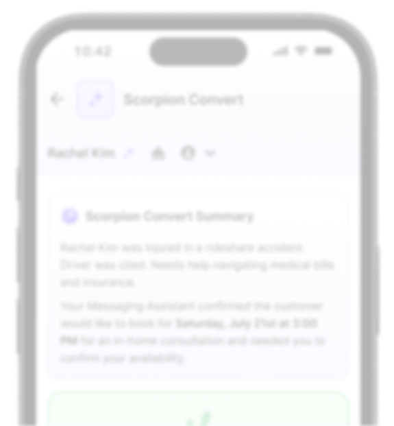 Scorpion convert works out of the box. No setup, no scripts, no extra tools. It’s trained on your data, customized to your business and connected to your CRM.