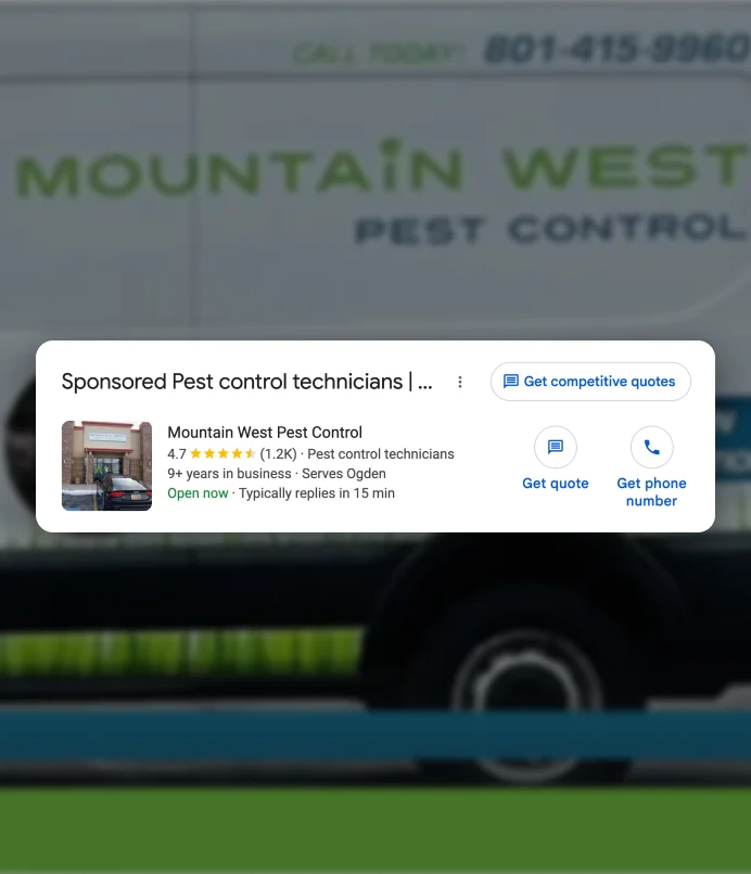 Hire a pest control ad agency that builds and manages high-performing Google Ads campaigns designed to increase leads, lower cost per lead, and grow your service area.